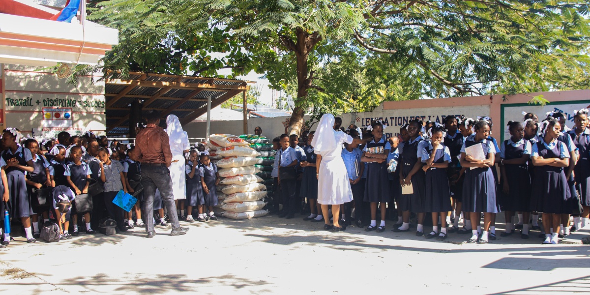 Children in Haiti are at greatest risk as the humanitarian crisis deepens. Armed gangs are traumatising children and driving them further into hunger and poverty, but Mary’s Meals and local partners continue providing vital daily school meals.